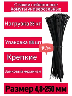 Хомут для стяжки нейлоновый пластиковый 250х4.8 (100шт)
