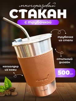 Стакан с трубочкой 500 мл из нержавеющей стали