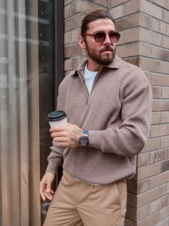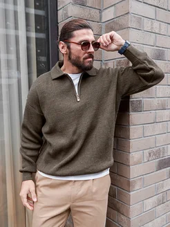 Свитер поло на молнии Оверсайз шерстяной