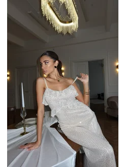 Новогоднее праздничное блестящее платье в пол с пайетками