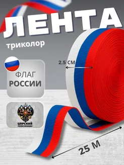 Репсовая лента триколор флаг РФ 25мм