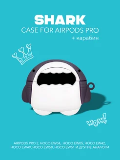 Чехол на наушники AirPods Pro, Pro 2 Акула с карабином