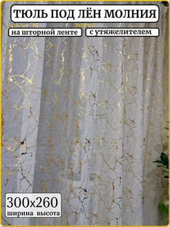 Тюль с золотом в гостиную 300х260 готовая на ленте