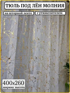 Тюль с золотом в гостиную спальню 400х240 готовая на ленте