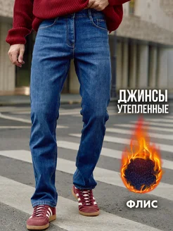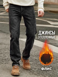 Джинсы мужские прямые брюки классические на флисе