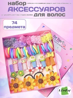 Большой Набор резинок и аксессуаров для волос 74 предмета