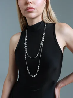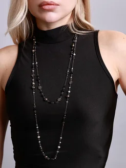 Длинное колье с цепью и бусинами