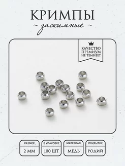 Кримпы зажимные 2мм 100 шт, покрытие - родий (платина)