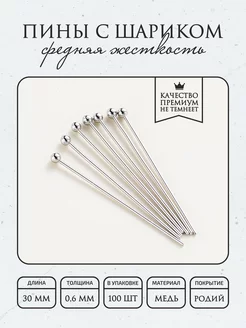 Пины 30 мм с шариком 100 шт, гальваническое покрытие