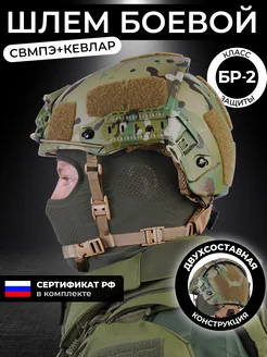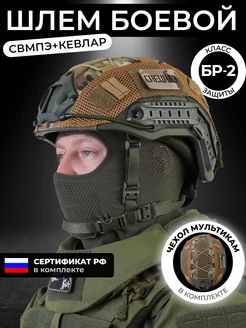 Шлем СВМПЭ тактический без ушей с чехлом мультикам