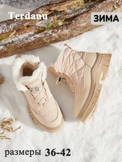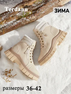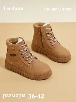 Зимние ботинки на шнуровке с вязаным манжетом для города