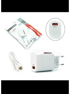 Зарядка USB кабелем Type-C 18w. Сетевой блок белый 3.0