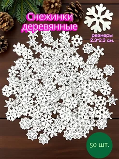 50 шт. Снежинки деревянные набор 2.3*2.3 см