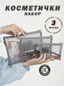 Косметичка маленькая прозрачная в сумку набор 3 шт
