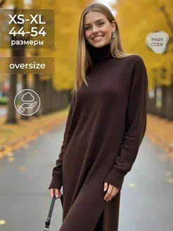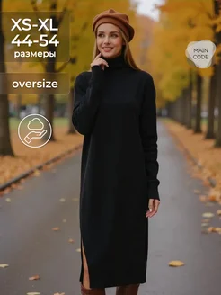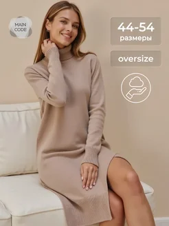 Платье теплое оверсайз свитер вязаное с горлом