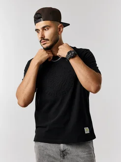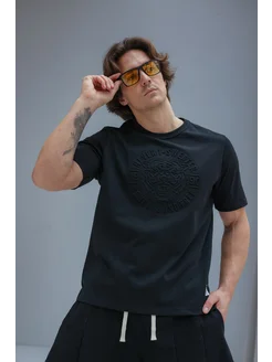 Футболка черная с принтом хлопок