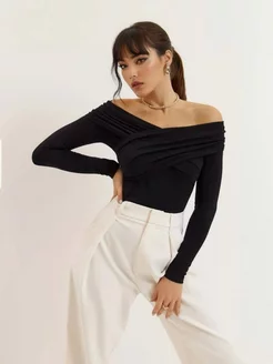 Лонгслив черный облегающий с драпировкой