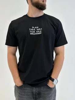 Футболка с вышивкой фразы "ПЛАН ТУДА СЮДА ТАМ СЯМ МИЛЛИОНЕР"