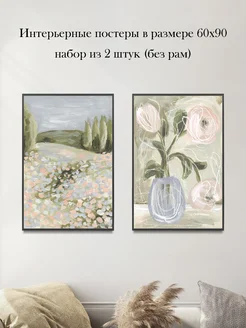 Интерьерные постеры 60х90 см "Цветочный пейзаж" 2 шт без рам