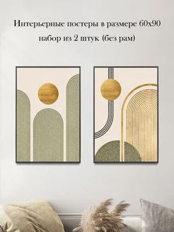 Интерьерные постеры 60х90 см "Золотые фигуры" 2 шт без рам