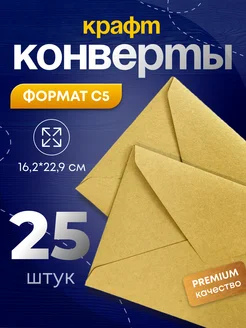 Крафтовые бумажные конверты С5 162х229 мм. 25 штук