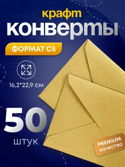 Крафтовые бумажные конверты С5 162х229 мм. 50 штук