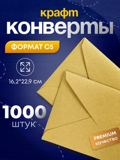 Крафтовые бумажные конверты С5 162х229 мм. 1000 штук