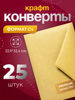 Крафтовые бумажные конверты С4 (А4) 229х324 мм. 25 шт