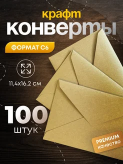 Крафтовые бумажные конверты С6 114х162 мм. 100 штук