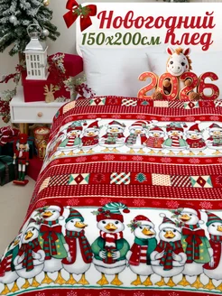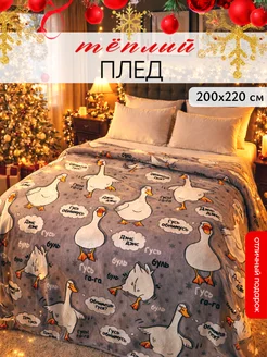 Плед новогодний 150х200 пушистый на диван Гусь обнимусь