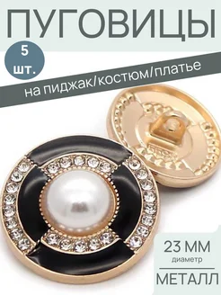 Набор черных металлических пуговиц с жемчугом из 5 шт