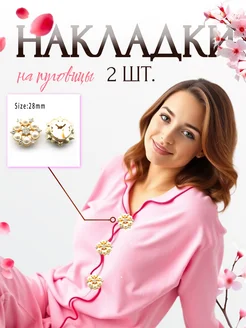 Набор жемчужных металлических накладок на пуговицы из 2 шт