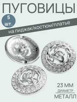 Набор серебристых металлических пуговиц со стразами из 5 шт