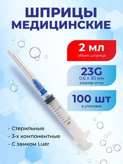 Шприц 2 мл одноразовый стерильный для уколов 100 шт