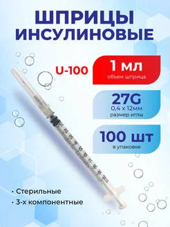 Шприц инсулиновый 1 мл одноразовый для уколов 100 шт