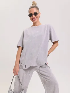Спортивный костюм на молнии оверсайз варенка серый