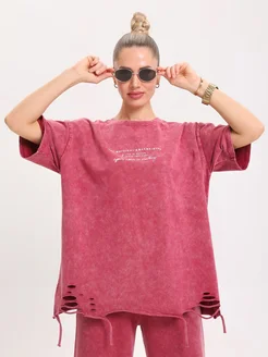 Спортивный костюм на молнии оверсайз варенка бордовый