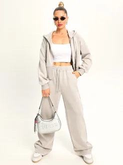 Спортивный костюм на молнии оверсайз варенка светло-серый