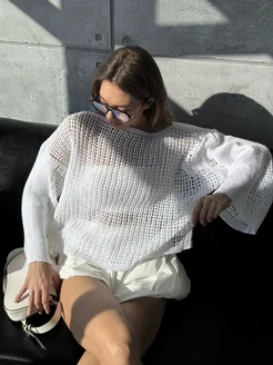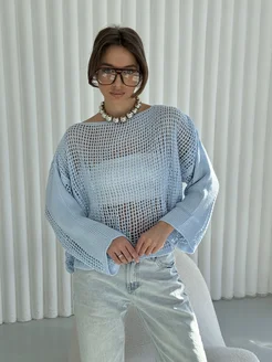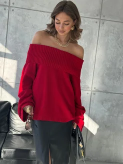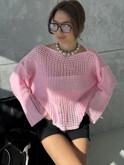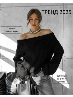 Укороченный оверсайз свитер укороченный с открытыми плечами