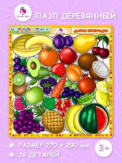 Деревянный пазл фигурный в рамке овощи и фрукты 26 деталей