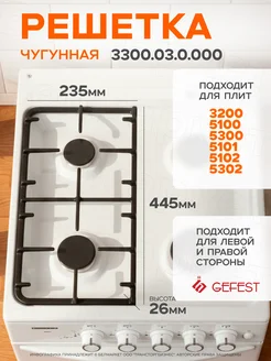 Решетка чугунная для газовой плиты 23,5 см х 44,5 см х 2,6
