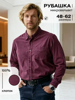 Рубашка с длинным рукавом вельветовая бордовая хлопок