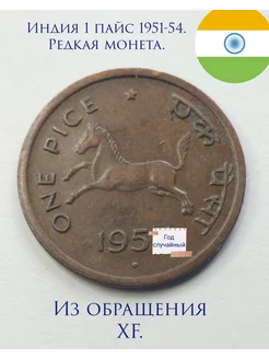 Монета Индии 1 пайс. Лошадь. Редкая. XF