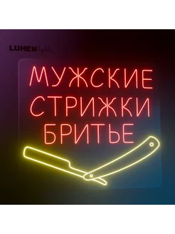Неоновая вывеска Мужские стрижки, 60х70 см