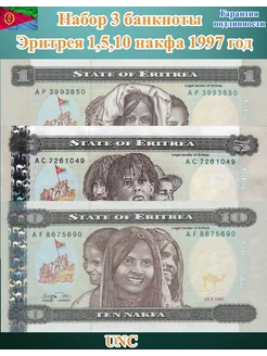 Эритрея. Банкноты. 1-5-10 накфа 1997 год Набор 3 штуки. UNC