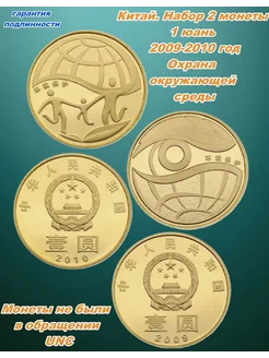 Китай. 1 юань 2009-2010 год. Набор 2 штуки. UNC