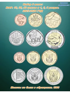 ЮАР. Монеты 10, 20, 50 центов, 1, 2, 5 ранд. Набор 6 штук