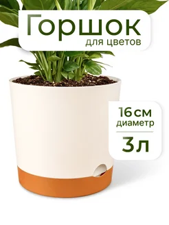 Горшок для цветов 3 л пластиковый с поддоном белый