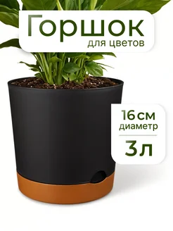 Горшок для цветов 3 л пластиковый с поддоном черный