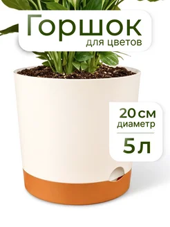 Горшок для цветов 5 л с поддоном пластиковый белый